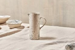 These elegant Ama jugs are handmade from stoneware and finished in a smooth glaze. The striking black splatter design is created by hand. Ideal as a pouring jug, they also make a striking vase.