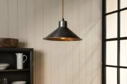 Our Chanpi pendant light has a classic shape and simple design which suits almost any interior. The wide base of the shade maximises the amount of light on display while the stylish bronze finish enhances the glow, creating a warm and inviting ambience. Its clean lines bring a sense of elegance and sophistication, giving the light a timeless quality. Versatile and long-lasting, this light looks striking positioned in multiples over a kitchen island.