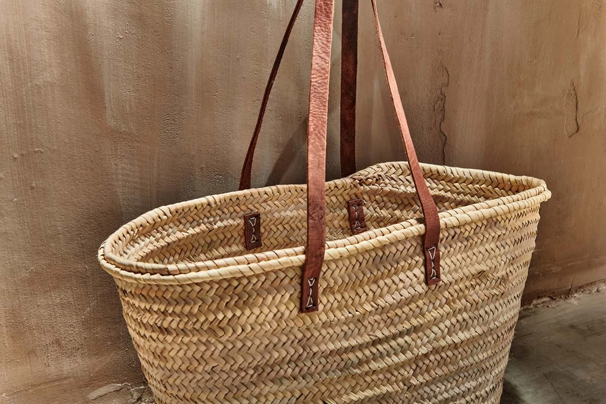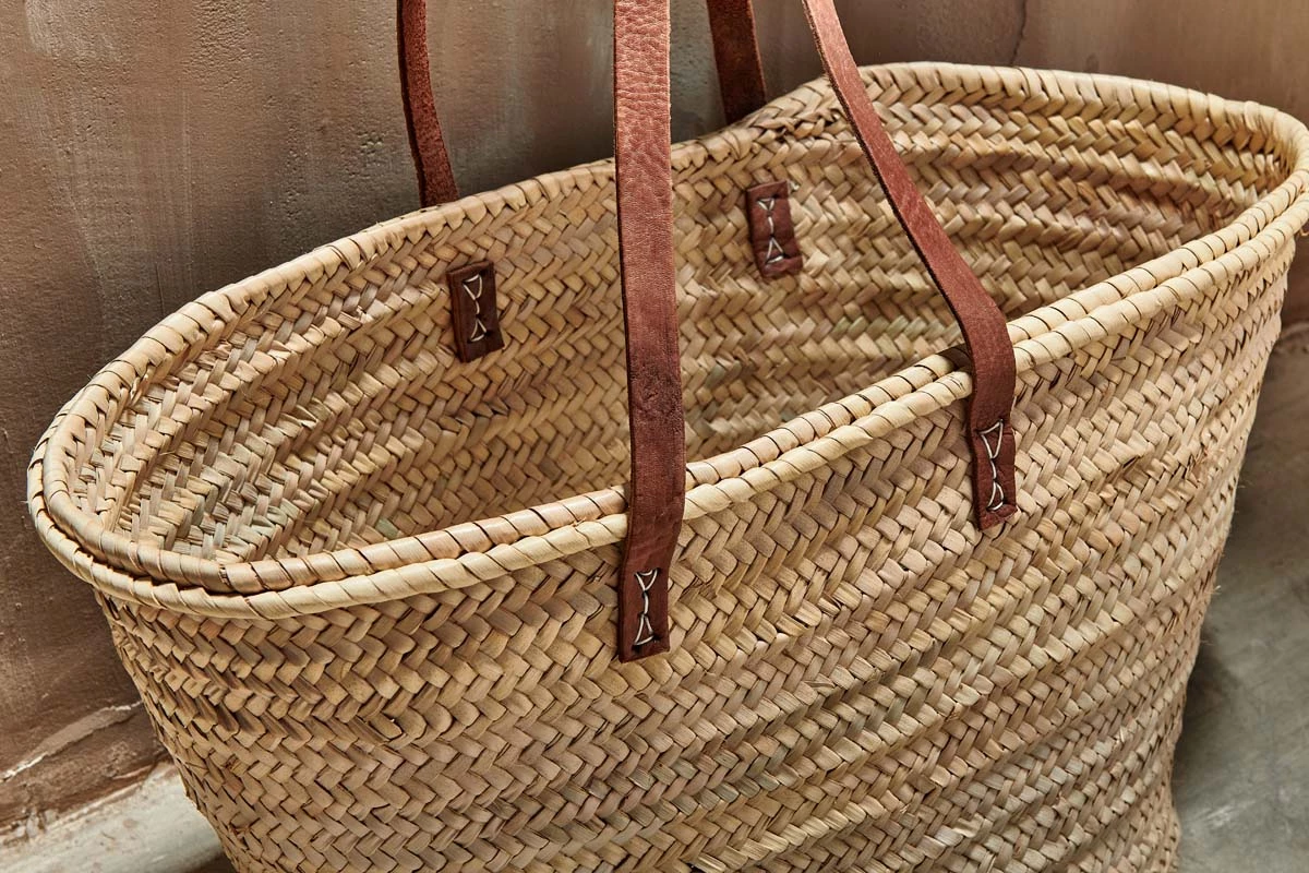 Our traditional Moroccan shoppers are handmade from natural palm leaf and finished with stylish leather handles. They are perfect for shopping or the beach.