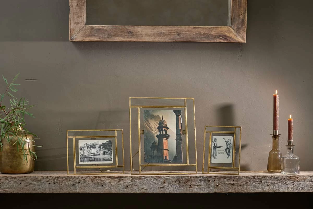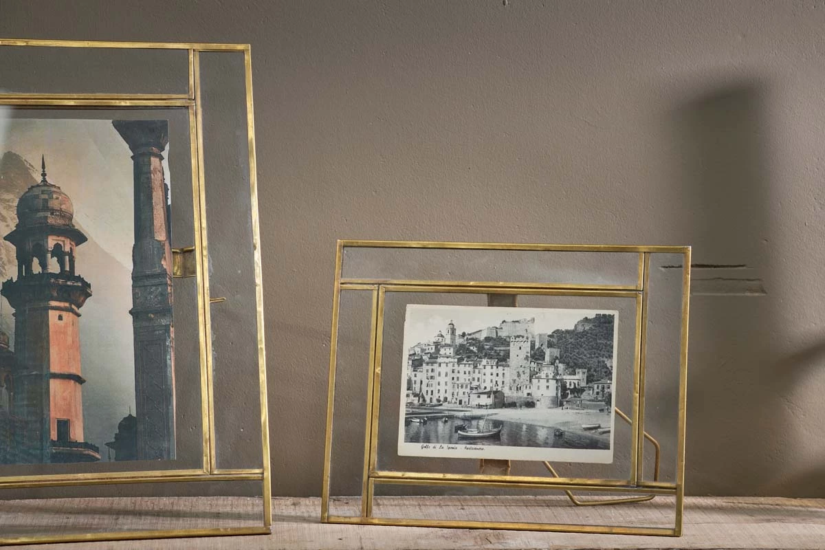 Elevate your photos with this elegant Marisa frame collection. Handcrafted from solid brass, this sophisticated and timeless frame has a touch of art deco design, with linear brass detailing adding definition to your artwork or photos. Crafted from brass using age-old techniques, the frame has a simple pin fitting that allows you to open the aperture and place a photo or keepsake within. The stand is crafted from brass wire and the frame can sit both landscape or portrait.