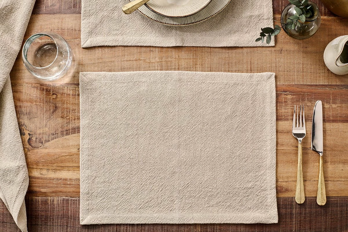 With its simple, elegant aesthetic, our Sanee placemats are a timeless addition to your tabletop. Handwoven from a combination of cotton and linen using traditional techniques, their neutral tones make them as versatile as they are stylish. The use of natural textiles is a sustainable choice, particularly linen which has minimal environmental impact. Soft to the touch, the placemats have a luxurious feel while being hard-wearing and long-lasting. Combine with Sanee napkins and runner for a sophisticated display.