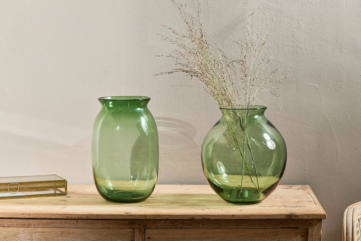 Vanita Glass Vase – Green – Wide