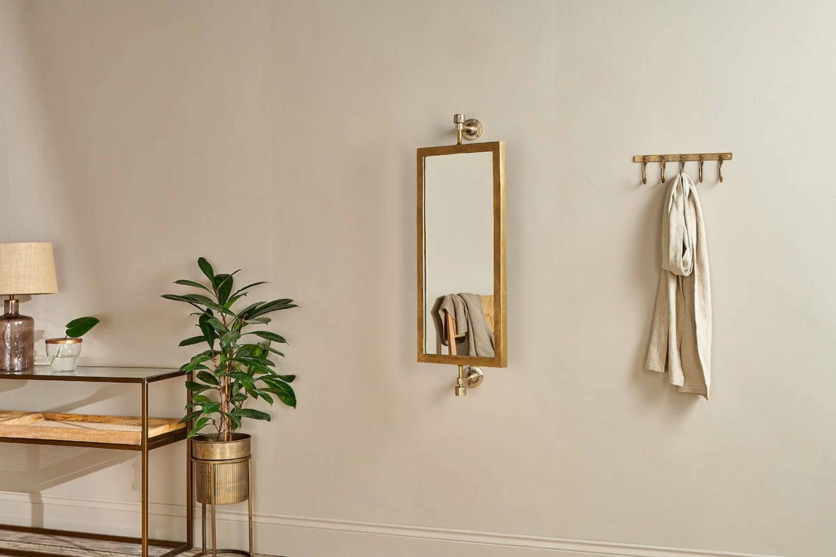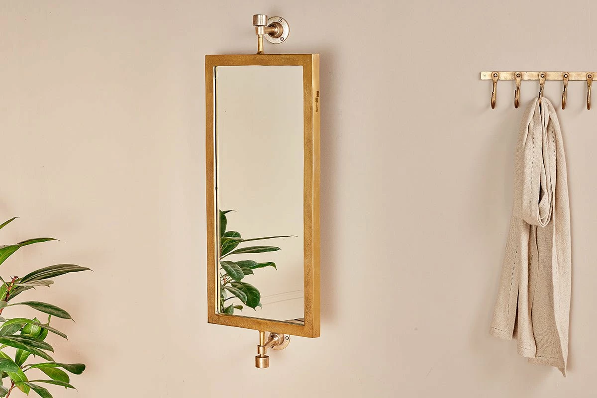 The Visala swivel wall mirror is a substantial piece. The clever pivot design adds a sense of sophisticated industrialism. This wide cast aluminium frame has a textured finish and appealing brass tone. The pivot designs allows you to turn and position the mirror exactly where you need it. The Visala design has its own presence that makes it feel a unique and stylish option. The Visala mirror is made using a traditional sand casting handmade process. Sand is used to shape and mould the liquid aluminium. Sand casting is an essentially circular production process where nearly all materials can be recycled.